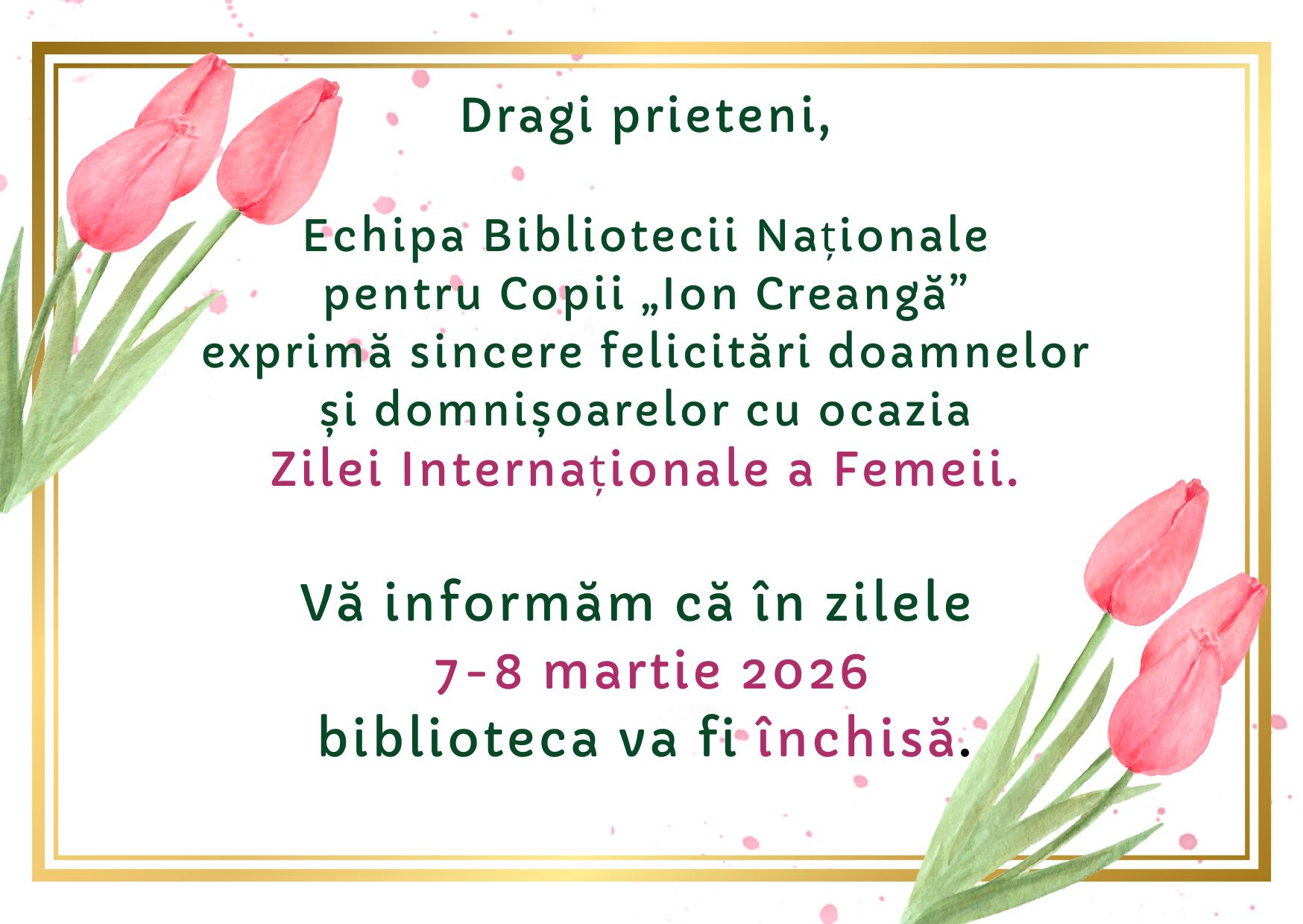 Cu prilejul Zilei Naționale a Lecturii, Biblioteca Națională pentru Copii „Ion Creanga” invită copiii, profesorii și părinții să sărbătorească bucuria cărților printr-o serie de activități captivante, organizate în parteneriat cu grădinițe, gimnazii și licee din Republica Moldova și România.